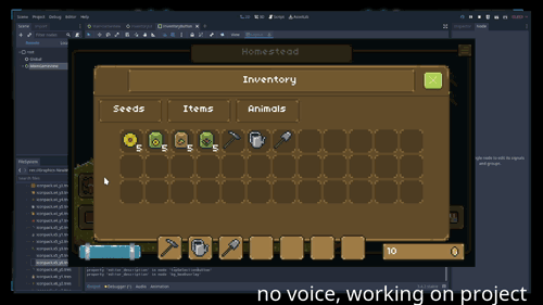 Another translation update: the default “tr()” function of Godot doesn’t provide a way to pass in parameters to replace, so I wrote a wrapper in the global class feeding it the text ID and a dictionary of objects to replace like { “TOREPLACE”: “This is the text that is going to be replaced”}. Works fine enough and is flexible enough to provide multiple parameters without digging into “…” parameters (for now). And while I was at it, I also added a wrapper for the “[center]” stuff, or rather, for all BBCode in general. Most text in the game needs to be centered - but the translator shouldn’t have to give a curly poop about that. So we remove those from the translations and wrap all of that stuff into a wrap_bbcode() function. Turns out this is going to be some kind of self-explainatory exercise in “what is my code doing”. Basically I gotta have a Global.wrap_bbcode(“center”,Global.translate(“TEXTBOXHEADER”,{“HEADER”: “Inventory”})). More verbose, yes, but also far easier explained than having “[center]” + … + “[/center]” flying around everywhere. Imagine we need a special additional bbcode because the font is misaligned. Have fun fixing all of those without a central point to hack it into :D
